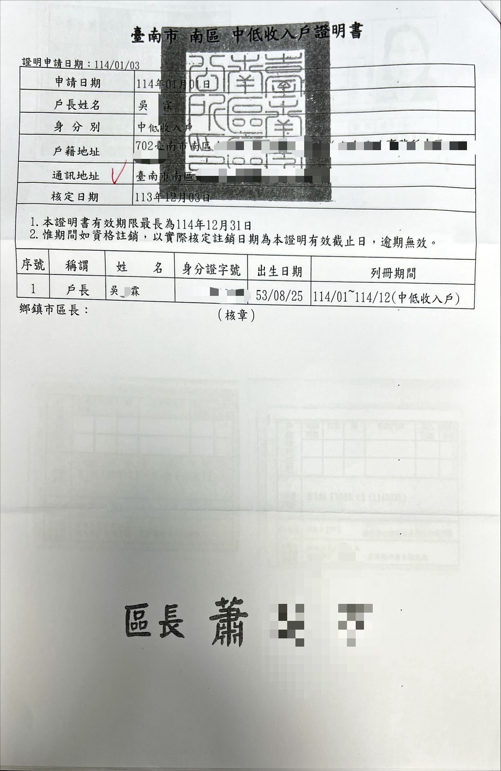 吳O霖先生(急難救助)