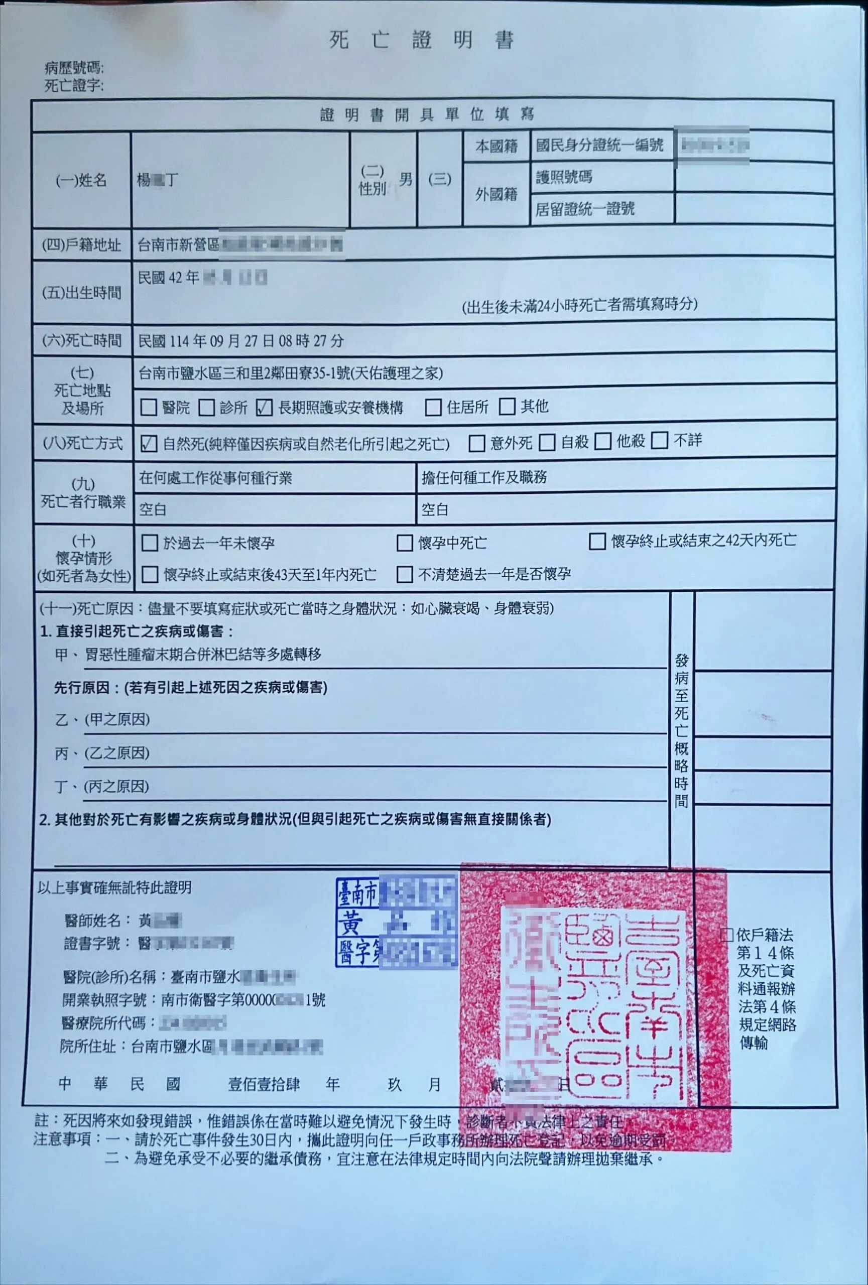 首頁 » 善心個案 » 故楊O丁先生(施棺救助)