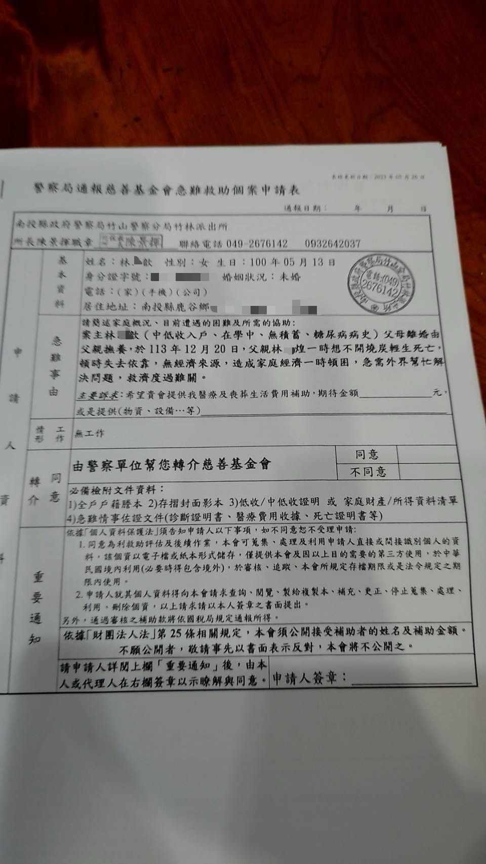 林O歆女士(急難救助)